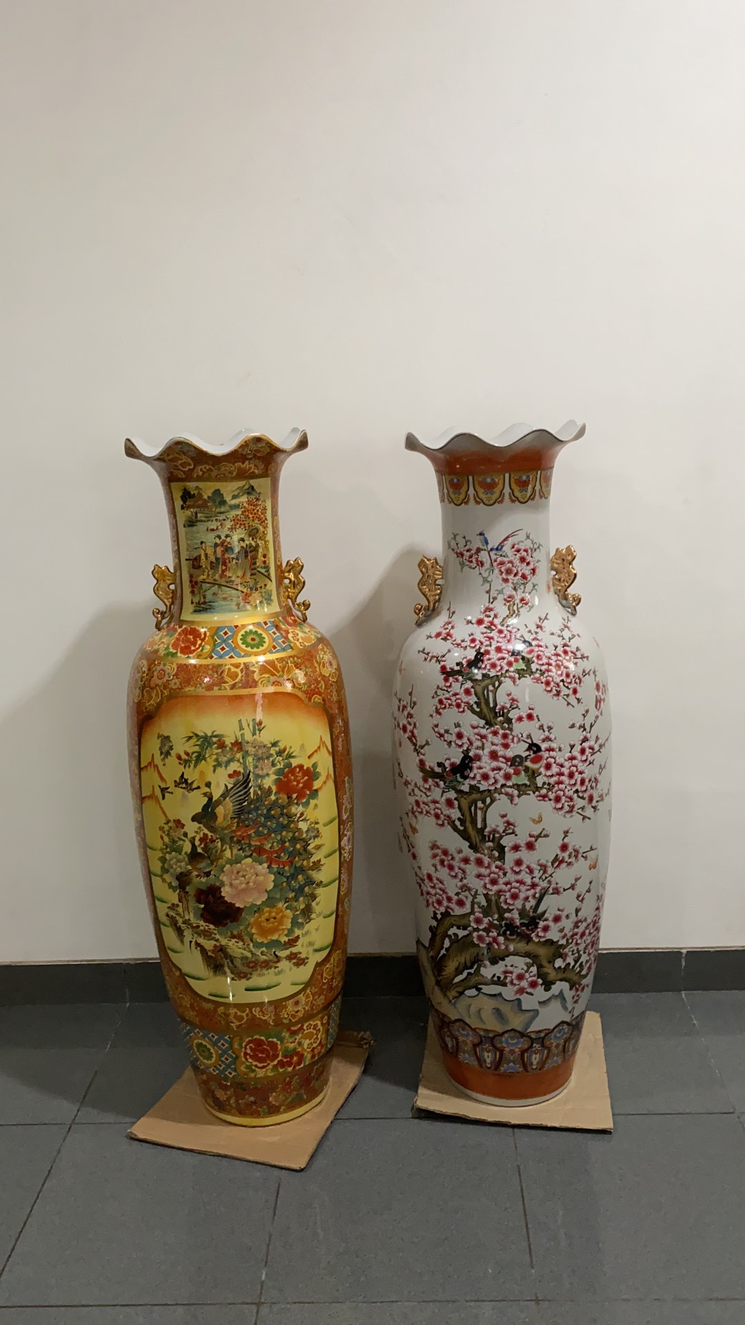 Beli guci raksasa gambar burung dan bunga, bolak balik di tangerang,indonesia.
